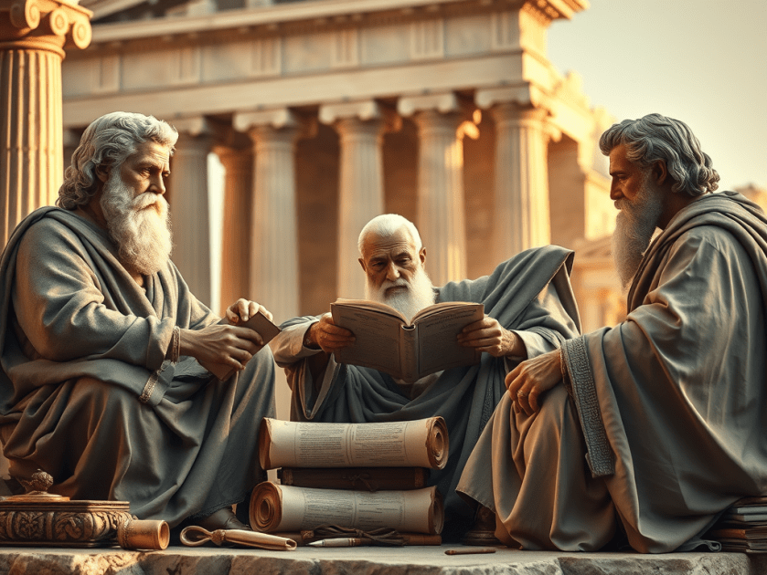 Platon je isticao unutarnje znanje i važnost razuma, dok je Aristotel promicao empirijsko promatranje i logičko zaključivanje nagovještavajući ideje koje će kasnije postati temelj znanstvenog metoda.